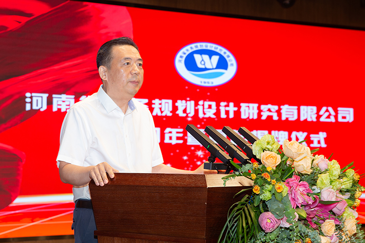付磊在致辞中代表河南水投集团对参加仪式的领导和嘉宾表示诚挚的欢迎和感谢,对省水务设计公司成立70周年表示热烈祝贺,对公司成立70年来为豫北地区乃至全省、全国水利工程建设做出的贡献给予充分肯定。他指出,省水务设计公司成功更名,是水投集团贯彻落实省委、省政府决策部署,切实做好“改革重组后半篇文章”的重要举措,对深入推进改革发展具有重要意义。一是进一步聚焦主责主业。更名后,河南省水务规划设计研究有限公司将成为河南省首家、全国为数不多的专司城乡水务规划设计的省级勘察设计单位。二是进一步优化板块布局。更名后,河南省水务规划设计研究有限公司将与河南省水利勘测设计研究有限公司、河南省水利勘测有限公司形成各具特色、各展所长、错位发展的业务布局,进一步擦亮“豫水设计”品牌。三是进一步增强核心竞争力。更名后,河南省水务规划设计研究有限公司将与中州水务控股有限公司形成业务互补、协同发展、互为支撑的发展格局,能够更好服务我省城乡水务一体化发展,进一步增强水投集团核心竞争力。同时,成为河南省深入推进“五水综改”“四水同治”,建设河南现代水网的生力军。他强调,在未来发展的道路上,水务设计公司要明确角色定位,充分发挥水务规划设计功能作用,为集团公司城乡水务板块高质量发展提供更加有力的支撑;要抢抓发展机遇,积极“走出去”开拓省外市场,与水利设计公司、水利勘测公司共同打造“豫水设计”品牌,不断凝练品牌内涵和价值,将品牌擦得更亮;要主动站位大局,结合集团公司总体发展战略,锚定战略目标、保持战略定力,深入思考在推进中国式现代化河南实践中承担的责任、奋斗目标和工作着力点,为推进中国式现代化建设河南实践贡献力量。
